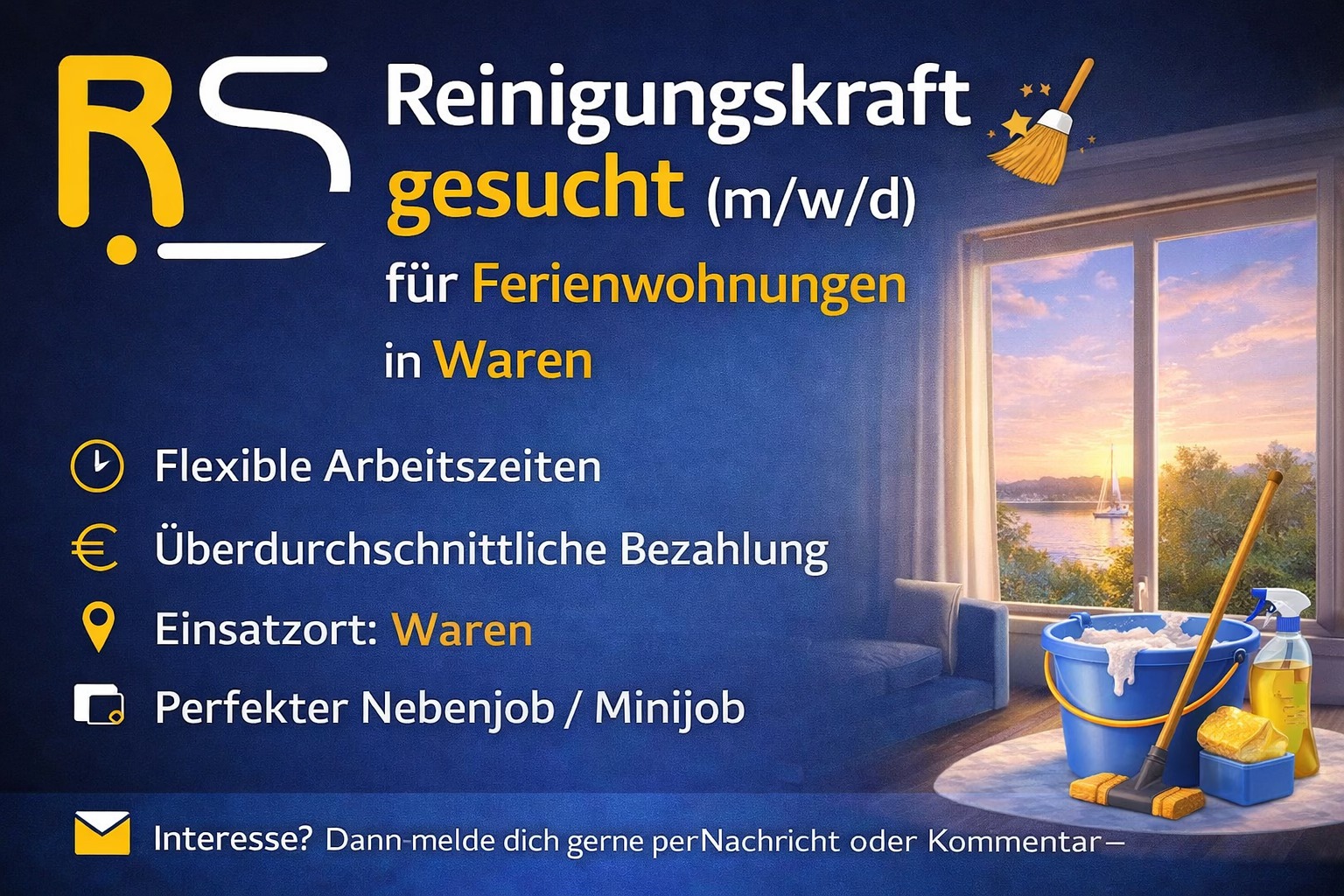 Wir suchen eine zuverlässige Reinigungskraft für unsere Ferienwohnungen in Waren.